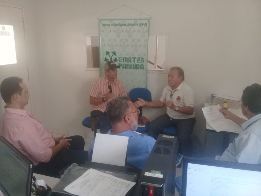 Participaram da reunião o prefeito de Sumé Éden Duarte, o vereador Antonio Carlos, o engenheiro agrônomo da Prefeitura de Sumé Romério Brito e os técnicos da Emater Euclidenor, Geneilson e Jonildo.