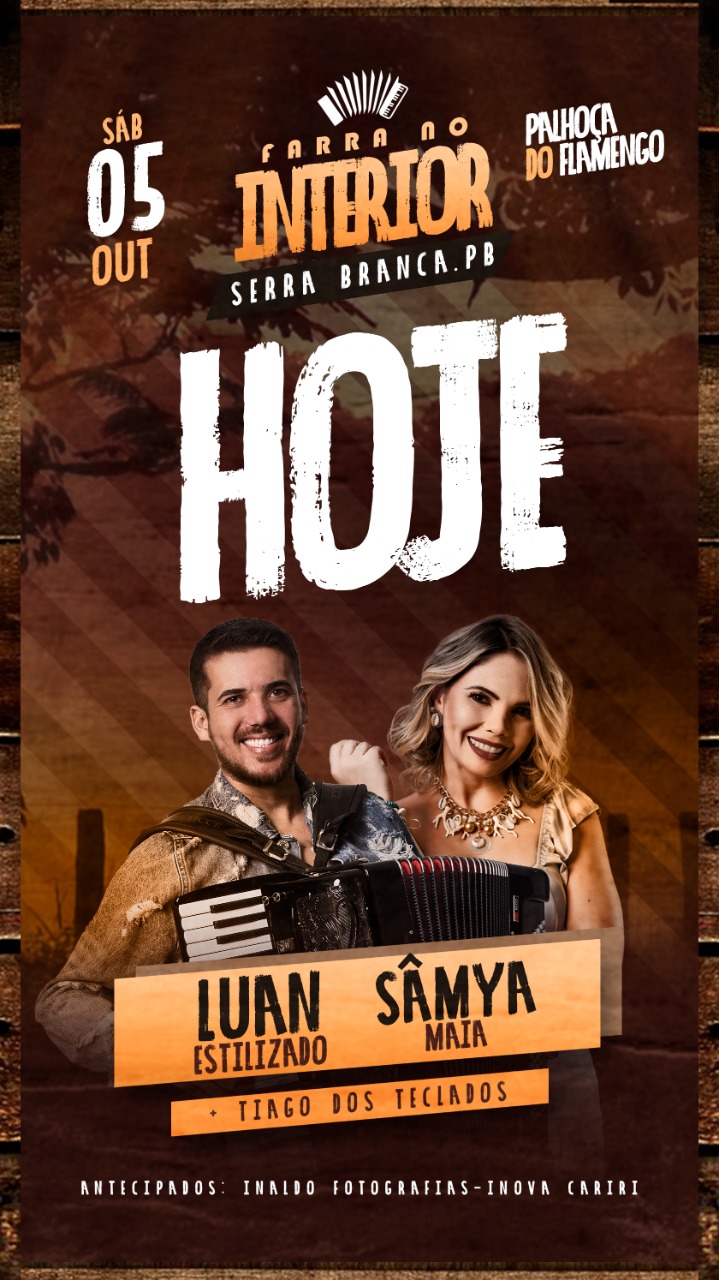 As atrações são: Tiago dos Teclados, Luan Estilizados e Samya Maia.