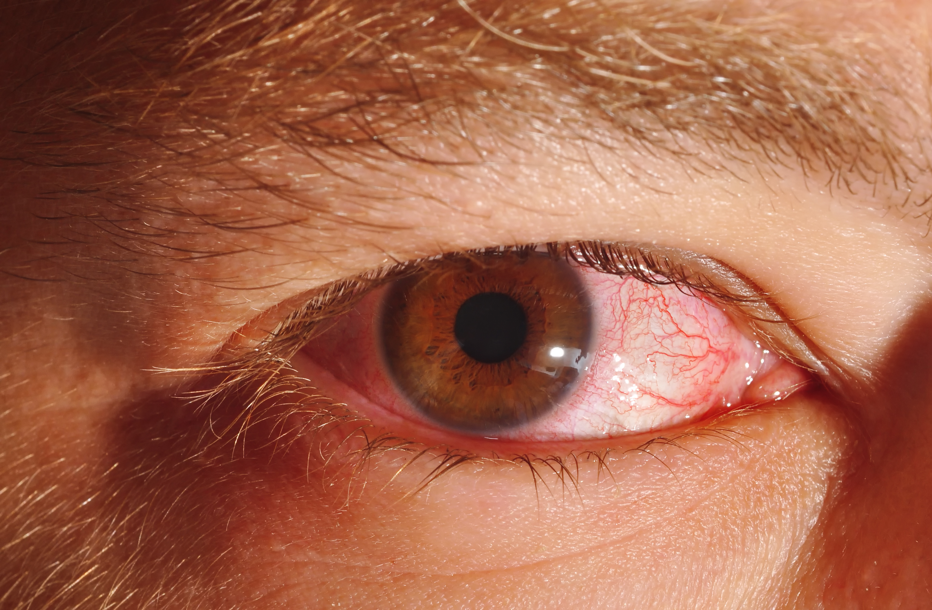 • Olhos vermelhos e lacrimejantes