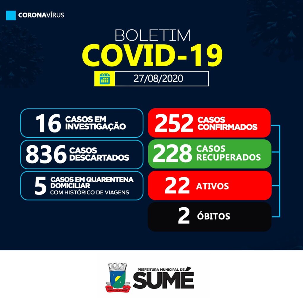 A Secretaria Municipal de Saúde de Sumé informa que não houve casos positivos para o coronavírus nesta quinta-feira, 27.