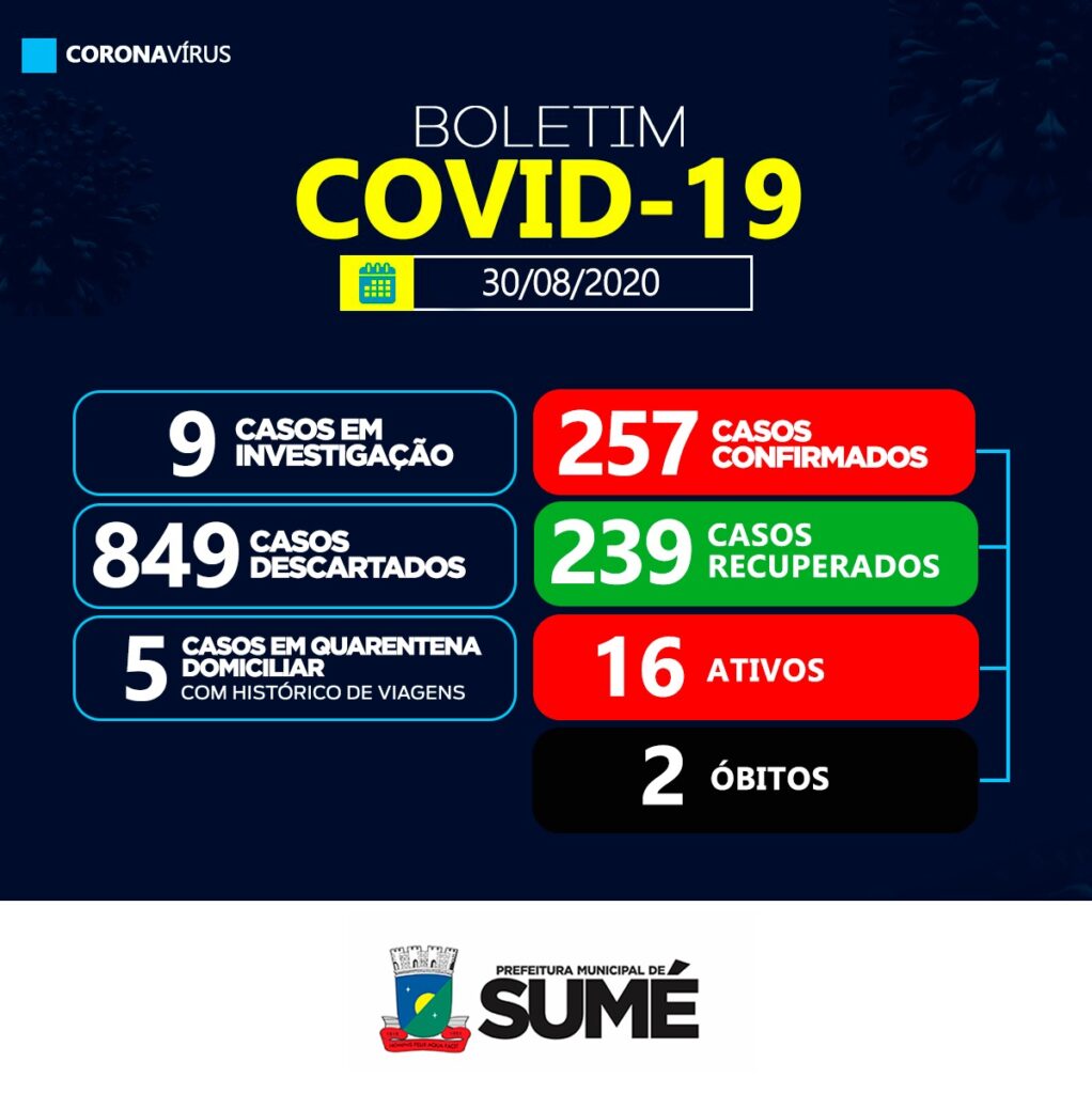 A Secretaria Municipal de Saúde de Sumé informa que não houve casos positivos para o coronavírus neste domingo, 30.