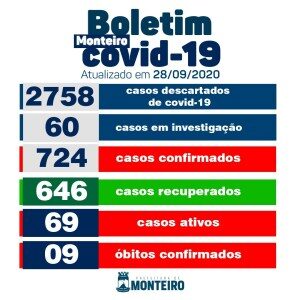 A Secretaria Municipal de Saúde de Monteiro informa que nesta Segunda-feira, 28, mais 18 novos casos confirmados para Covid-19.