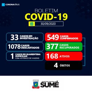 A Secretaria Municipal de Saúde de Sumé informa que não houve casos positivos para o coronavírus nesta quarta-feira, 30.