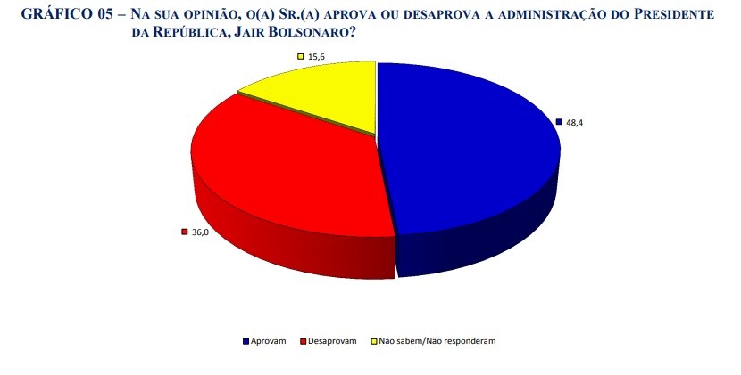 A pesquisa do Instituto Opinião revelou que o modelo de governo do presidente Jair Bolsonaro (sem partido) recebe aprovação de 48,4% da população.