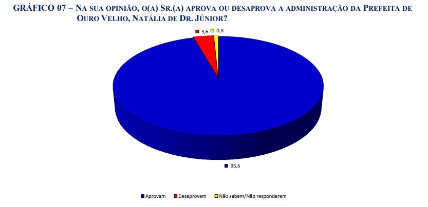 O Instituto Opinião também avaliou, junto ao eleitorado do município, a avaliação da gestão municipal. A administração da prefeita, Natália de Dr. Júnior, é aprovada por 95,6%.
