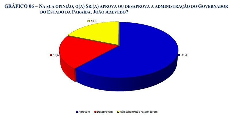 No município, 19,6% dos eleitores desaprovam a gestão de João, outros 18,8% não sabem ou não quiseram responder.