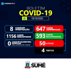 A Secretaria Municipal de Saúde de Sumé informa que não houve casos positivos para o coronavírus nesta segunda-feira, 19.