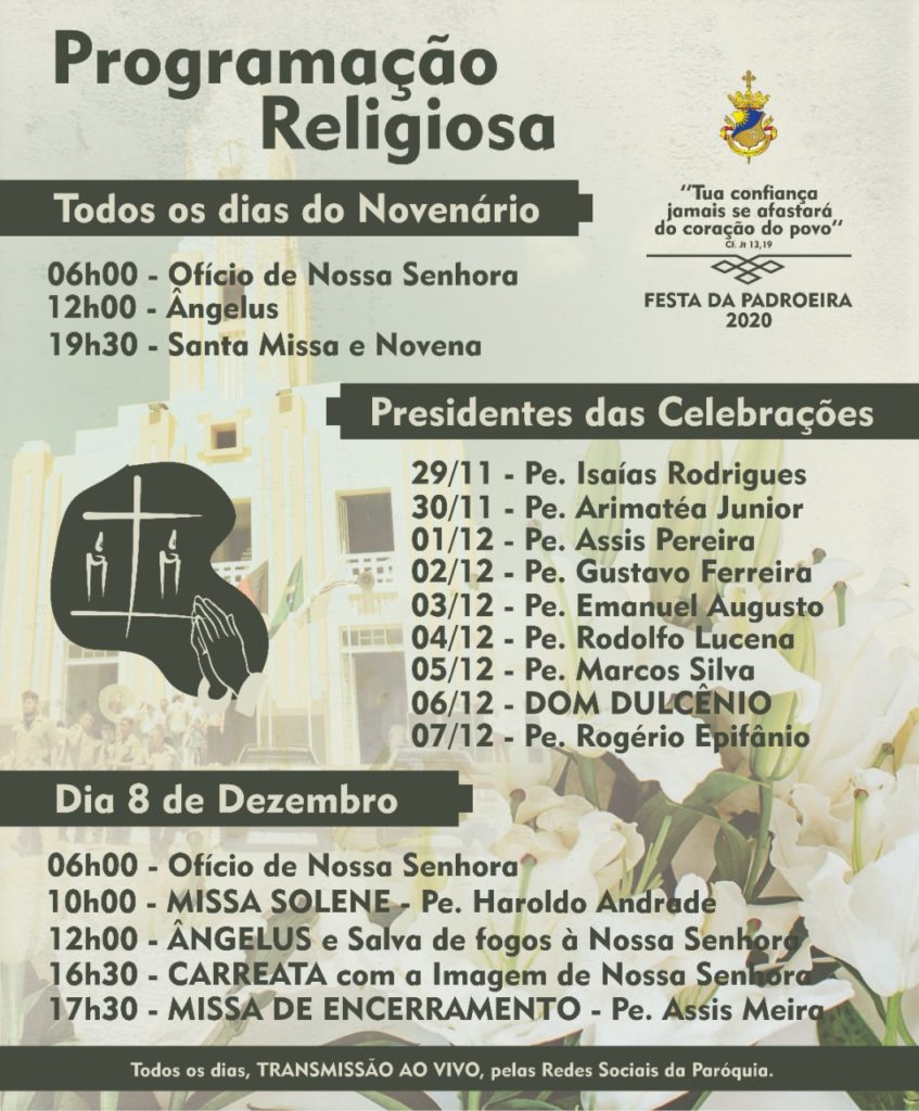 A Festa da Padroeira Nossa Senhora da Conceição em Sumé terá início no dia 29 de novembro e seguirá até o dia 08 de dezembro, mas neste sábado (21), já acontece o primeiro evento, o Jantar Fraterno 2020.