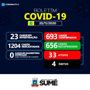 A Secretaria de Saúde de Sumé informa que houve 03 casos positivos de coronavírus nesta quarta-feira, 25.