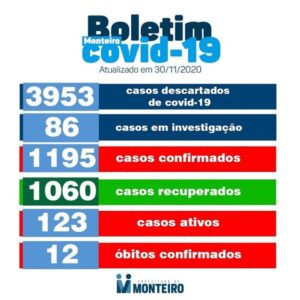 A Secretaria Municipal de Saúde de Monteiro informa que nesta Segunda, 30, mais 28 novos casos CONFIRMADOS para Covid-19.