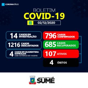 A Secretaria Municipal de Saúde de Sumé informa que foram registrados 29 casos positivos para o coronavírus nesta quarta-feira, 02.