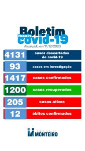 A Secretaria Municipal de Saúde de Monteiro informa que nesta sexta-feira (11), mais 51 novos casos CONFIRMADOS para Covid-19.