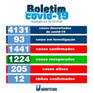 A Secretaria Municipal de Saúde de Monteiro informa que neste domingo (13), mais 02 novos casos CONFIRMADOS para Covid-19.