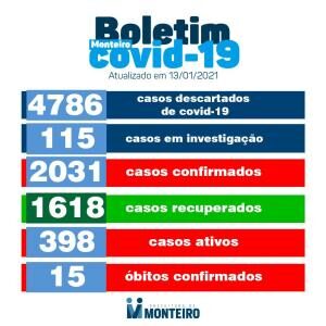 A Secretaria Municipal de Saúde de Monteiro informa que nesta Quarta-feira, 13, mais 23 novos casos CONFIRMADOS para Covid-19.