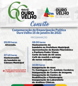 A Prefeitura de Ouro Velho anunciou nesta quarta-feira, 13, a programação oficial em comemoração ao aniversário de 60 anos de emancipação política que acontece nesta sexta-feira, dia 15 janeiro.
