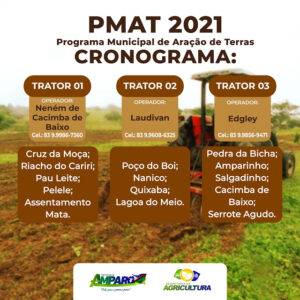 A Prefeitura Municipal de Amparo através da Secretaria de Agricultura e Abastecimento, lança cronograma do Programa Municipal de Aração de Terras das comunidades rurais.