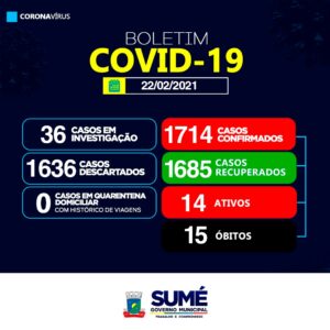 A Secretaria Municipal de Saúde de Sumé registrou 07 casos positivos para o coronavírus nesta segunda-feira, 22.