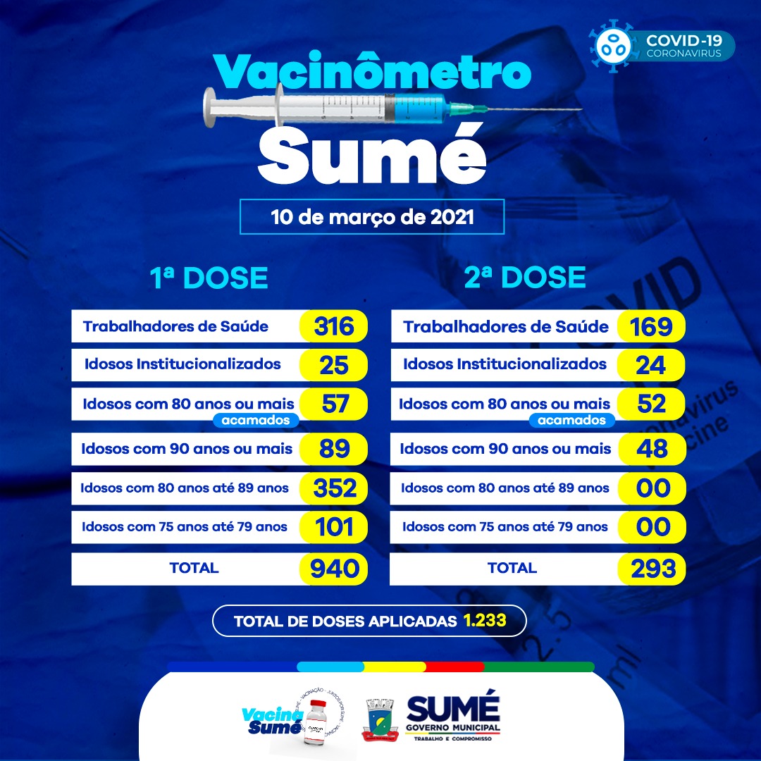 A Secretaria de Saúde de Sumé atualiza os números da vacinação contra o coronavírus no município