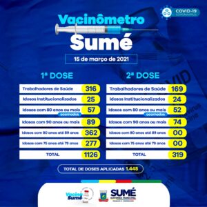 A Secretaria de Saúde atualiza os números das doses aplicadas da vacina contra o coronavírus no município.