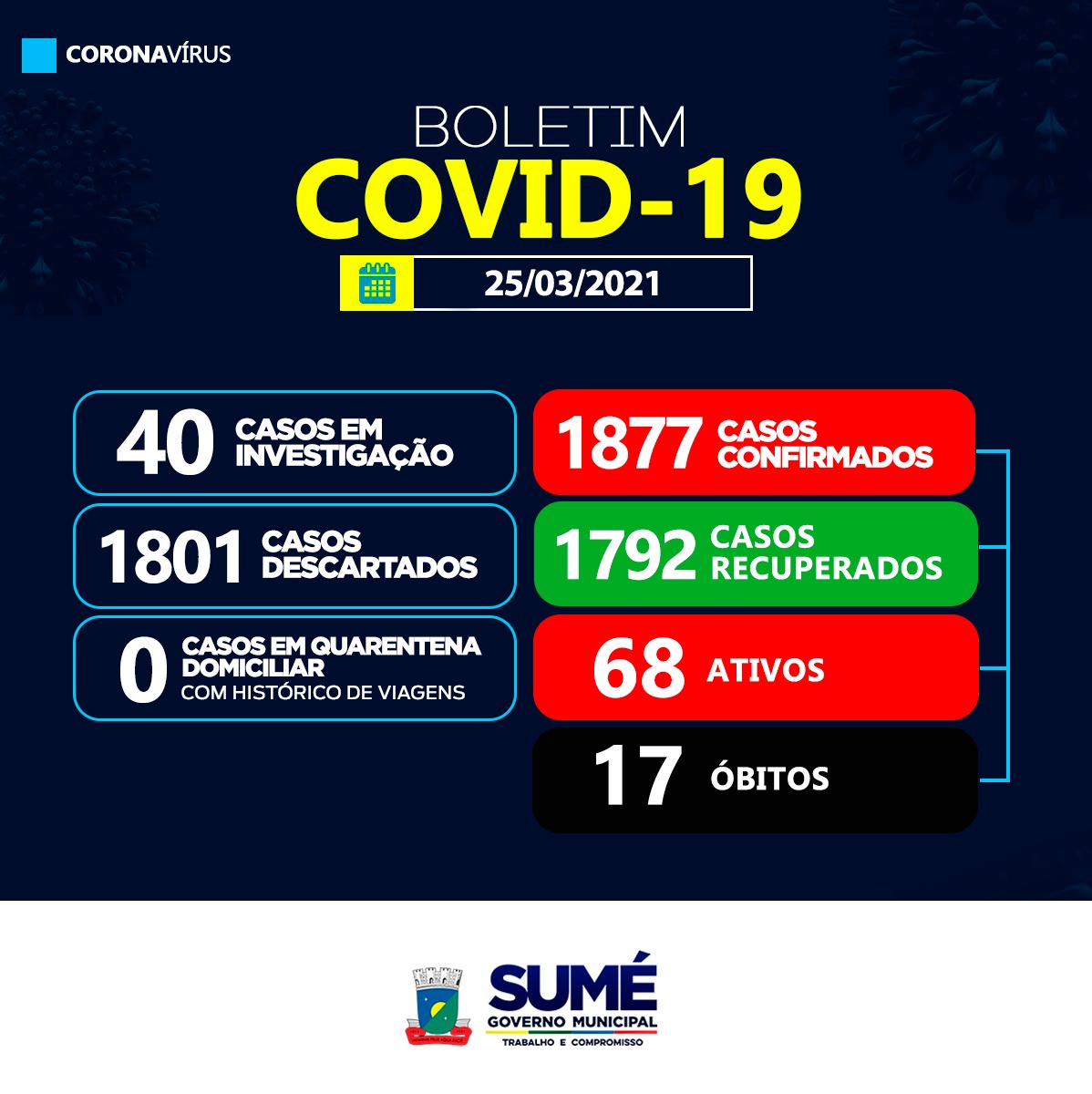 A Secretaria Municipal de Saúde de Sumé registrou nesta quinta-feira (25), mais 07 casos positivos para o coronavírus.