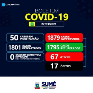 A Secretaria de Saúde de Sumé não registrou nenhum caso de coronavírus neste sábado, (27/03).
