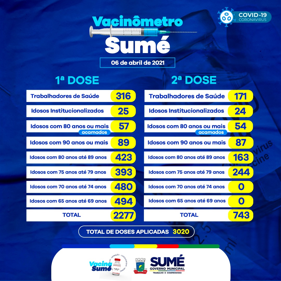A Secretaria de Saúde atualiza os números das doses aplicadas da vacina contra o coronavírus no município