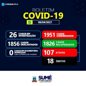 A Secretaria Municipal de Saúde de Sumé registrou nesta terça-feira (06), mais 07 casos positivos para o coronavírus.