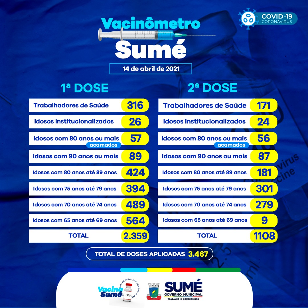 A Secretaria de Saúde atualiza os números das doses aplicadas da vacina contra o coronavírus no município.