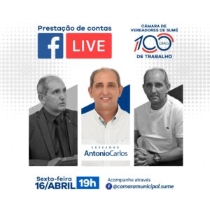 Nesta sexta-feira (16), o presidente da Câmara de Vereadores de Sumé, Antônio Carlos Sarmento realiza uma live de prestação de contas dos 100 primeiros dias da gestão no Legislativo sumeense.