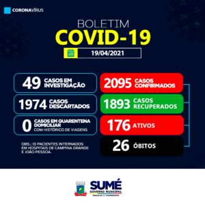 A Secretaria Municipal de Saúde de Sumé registrou nesta segunda-feira (19), mais 20 casos positivos para o coronavírus.