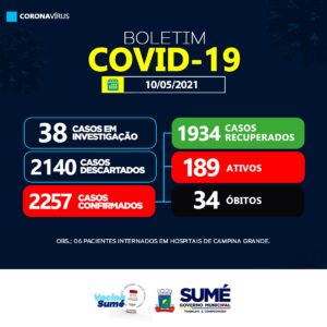A Secretaria Municipal de Saúde de Sumé registrou nesta segunda-feira (10), mais 31 casos positivos para o coronavírus.