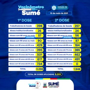 A Secretaria de Saúde atualiza os números das doses aplicadas da vacina contra o coronavírus no município.