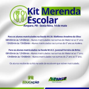 - Alunos matriculados nas turmas do Maternal ao 5º ano receberão os kits das 08h00min às 12h00min;