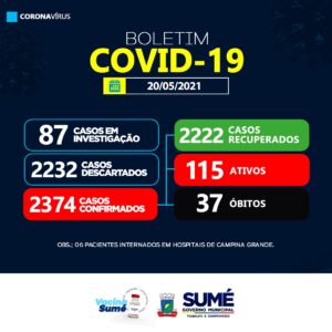 A Secretaria Municipal de Saúde de Sumé registrou nesta quinta-feira (20), 15 casos positivos para Coronavírus. São eles: