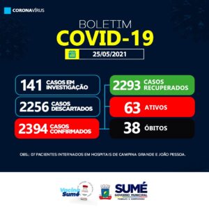 A Secretaria Municipal de Saúde de Sumé registrou nesta terça-feira (25), 04 casos positivos para Coronavírus.