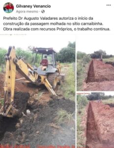 A gestão Augusto Valadares vem demonstrando compromisso com as comunidades rurais na construção de passagens molhadas e na recuperação das estradas vicinais do município.