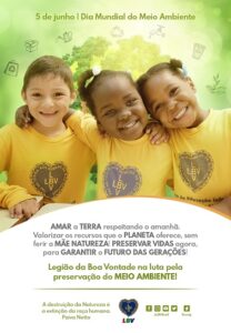 Em 5 de junho, comemora-se o Dia Mundial do Meio Ambiente, e, para celebrar essa data, nada melhor do que refletirmos sobre a nossa ação em prol da Mãe Natureza e de tudo que ela nos oferece. Sempre preocupada com a valorização da Vida e com o futuro das gerações, a Legião da Boa Vontade (LBV), desde seus primórdios, em 1950, promove ações e campanhas socioeducativas e de conscientização pela preservação da Natureza.