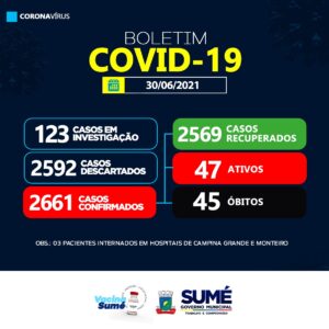 A Secretaria de Saúde de Sumé não registrou nenhum caso de coronavírus para esta quarta-feira, (30/06).
