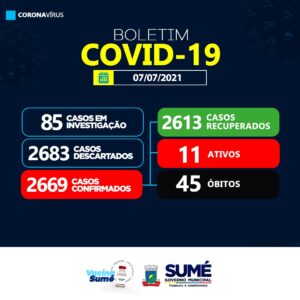 Foram registrados 09 casos recuperados na data de hoje, o município tem agora 11 casos ativos para a Covid-19.
