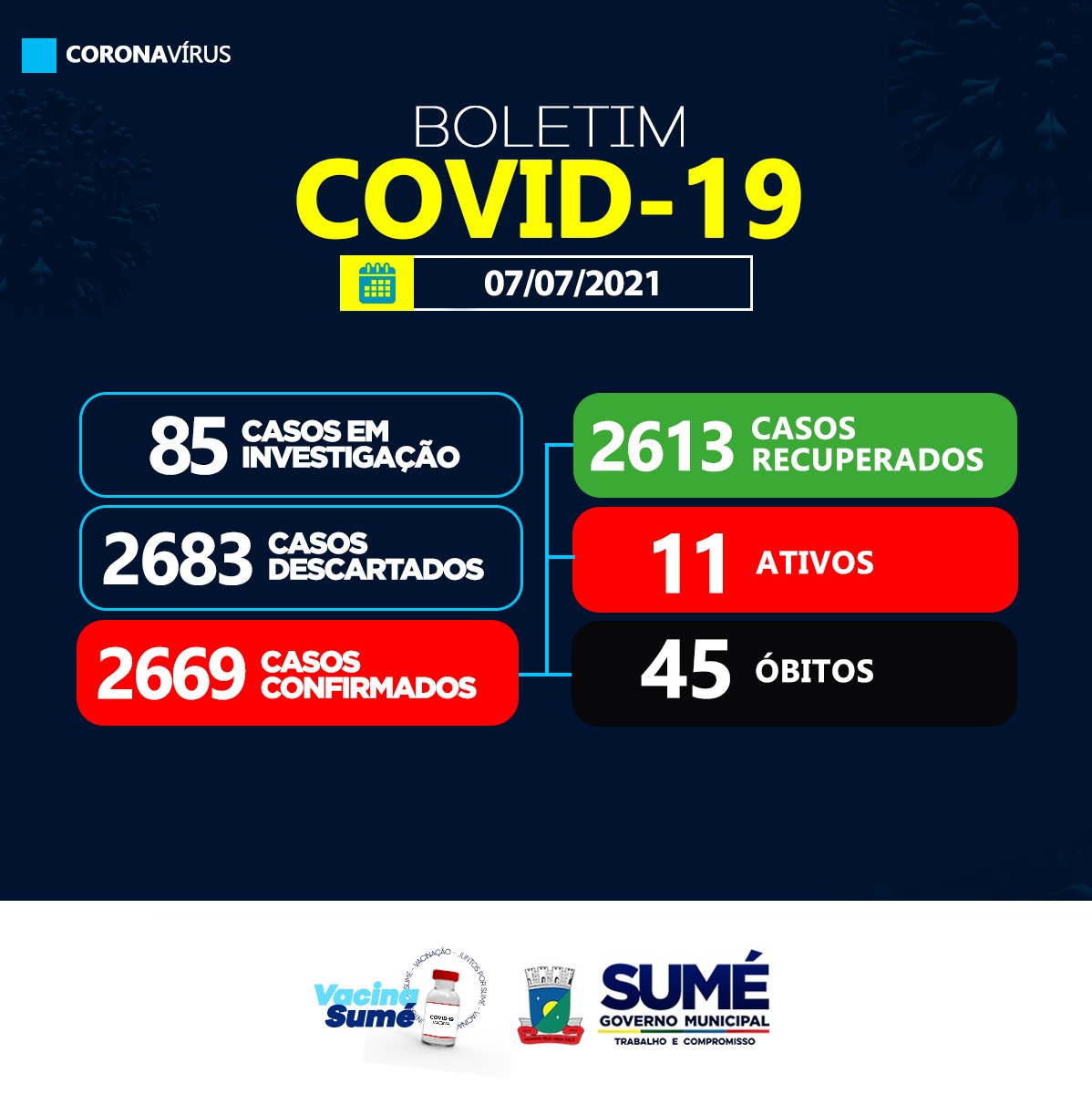 O município de Sumé não apresentou casos confirmados de coronavírus nesta quarta-feira (07).