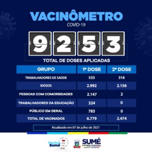 A Secretaria de Saúde atualiza os números das doses aplicadas da vacina contra o coronavírus no município.