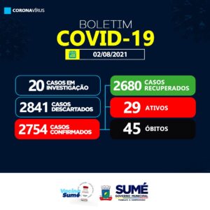 A Secretaria Municipal de Saúde de Sumé informa que foram registrados 08 novos casos positivos para o coronavírus nesta segunda-feira, 02.