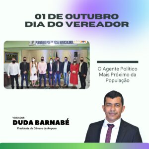 O presidente da Câmara de Vereadores de Amparo, Duda Barnabé, emite nota em homenagem ao Dia do Vereador.