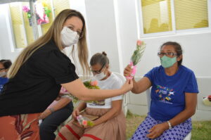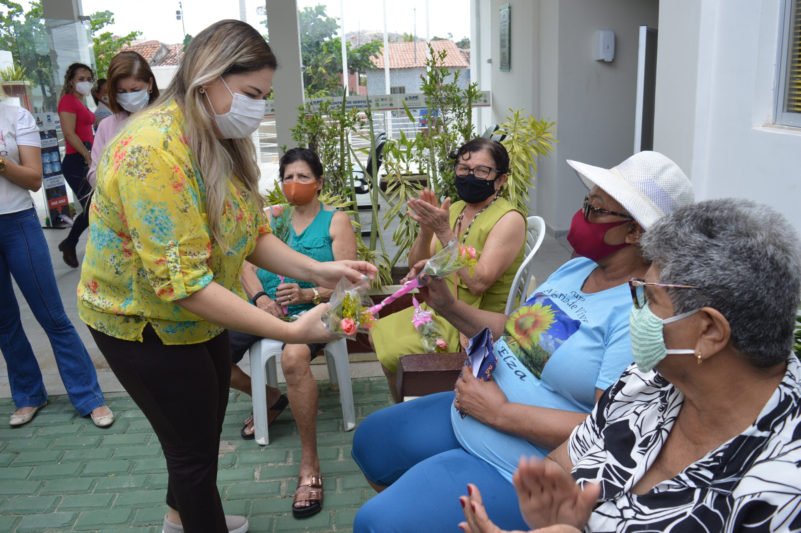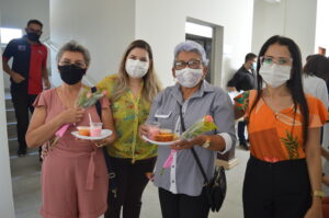Para comemorar o retorno das atividades, a Semas, em parceria com a Secretaria de Saúde e a Unicir, realizaram uma homenagem ao Dia do Idoso, proporcionando um café da manhã, distribuição de rosas e brindes, além de palestra, atendimento em saúde com aferição de pressão arterial e pesagem, feitos pelas alunas do Curso de Enfermagem da Unicir e apresentação cultural com o grupo de dança do Serviço de Convivencia e Fortalecimento de Vínculos (SCFV).