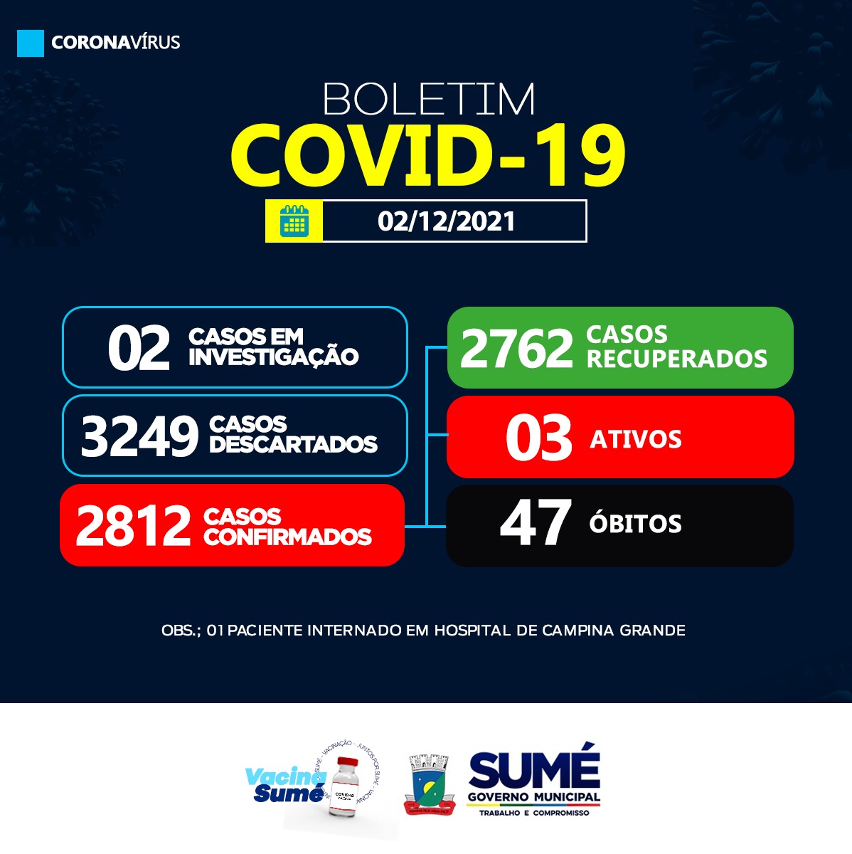 A Secretaria de Saúde de Sumé não registrou nenhum caso de coronavírus nesta quinta-feira, (02/11).
