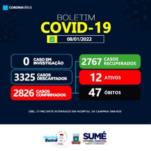 A Secretaria de Saúde de Sumé registrou 04 novos casos de coronavírus para este sábado, (08/01).