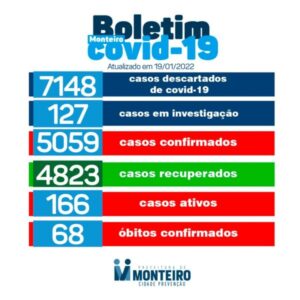 Com os 49 novos casos, o município de monteiro passou para 166 o número de casos ativos da doença. Sendo o município da região com o maior número de casos da covid-19.