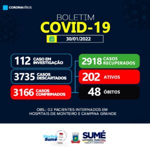 A Secretaria de Saúde de Sumé registrou um caso positivo para o coronavírus para este domingo, (30/01).