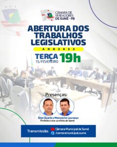 A Câmara de Vereadores de Sumé inicia nesta terça-feira (15), a partir das 19h, as atividades legislativas no ano de 2022.