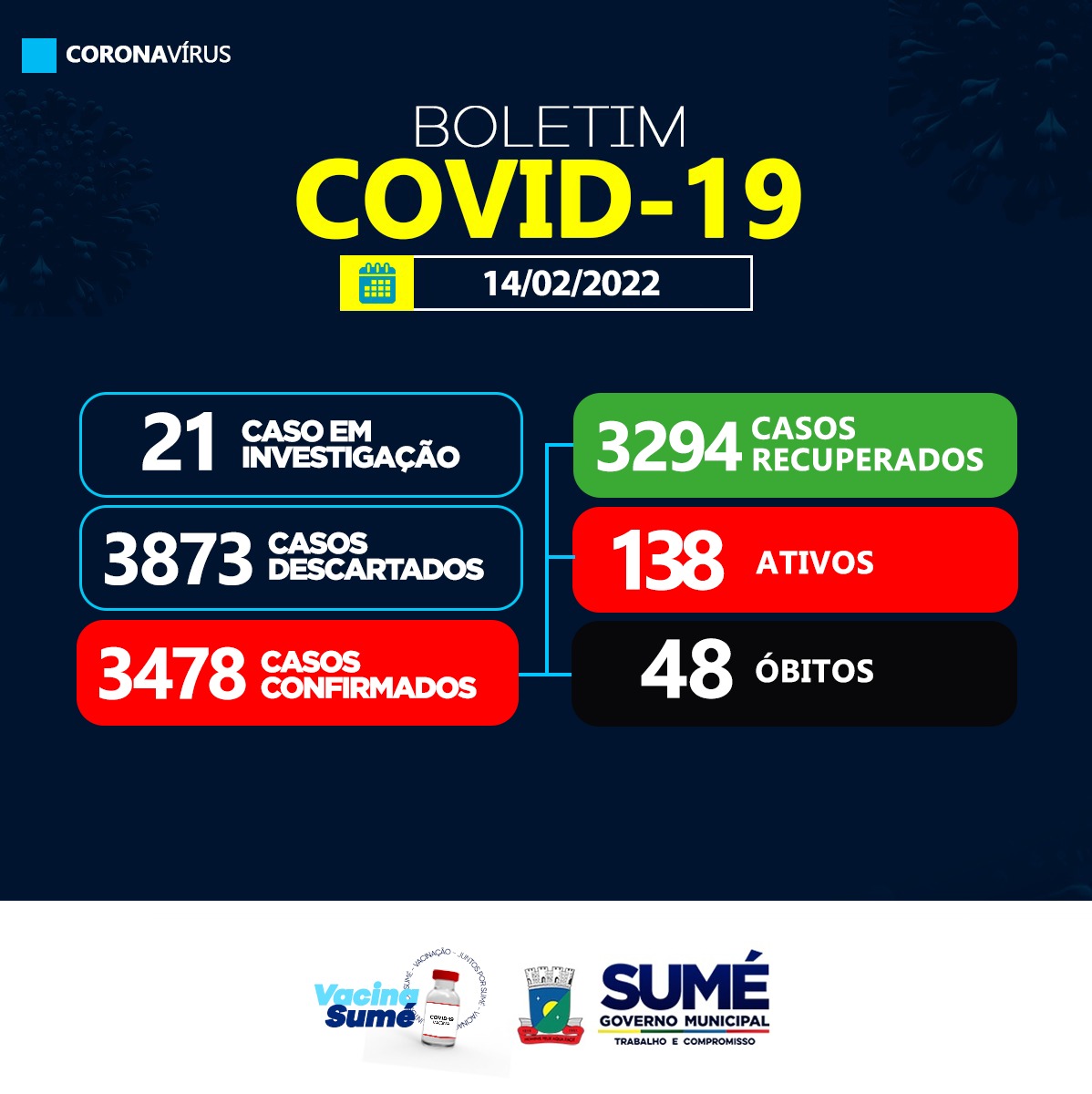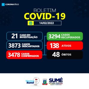 A Secretaria de Saúde de Sumé registrou 48 novos casos de coronavírus para esta segunda-feira (14/02).